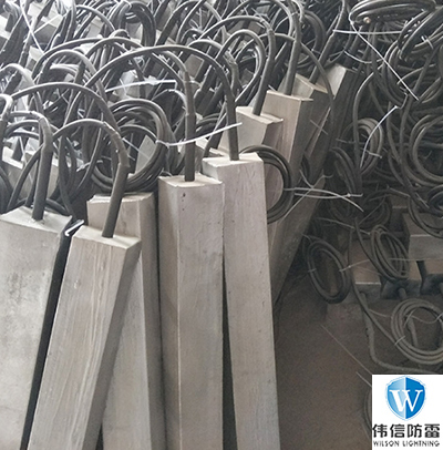 避雷針若定位在地面,則將焊接成形的基礎預埋件垂直置于1200×1200×1000mm規格土坑的正中央,至少有兩點于180度方向與引下線作可靠電氣連接,各焊接點符合規范要求;若避雷針定位在大樓頂…